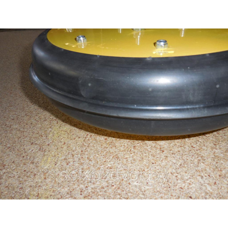 Колесо прикатывающее 3х13″ (330х75 мм). Шина мягкая, легко деформируется. Эта шина хорошо самоочищается от налипшей почвы. Можно использовать на любых почвах. Хорошо копирует рельеф даже на мягких почвах. По середине дорожки качения шины имеется ребро, которое способствует лучшему прикатыванию рядка, а также делает ее более жесткой в центре сечения. Применяется на многих сеялках ПК «Томь», GraitPlains и др.