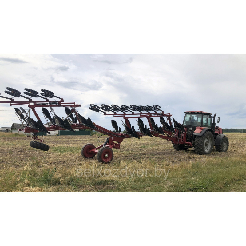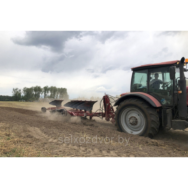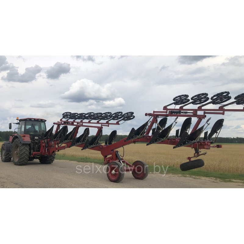 Плуг восьмикорпусной оборотный с защитой "срезной болт" предназначен для гладкой пахоты на глубину до 27 см на различных типах почв, не засорённых камнями и другими препятствиями.