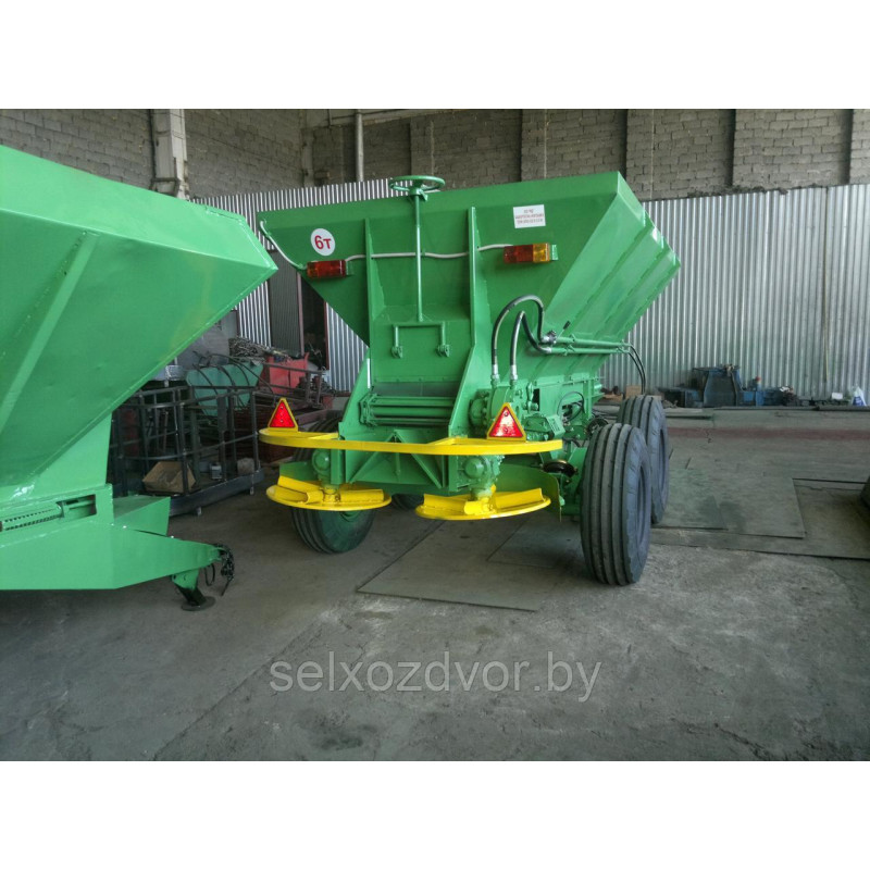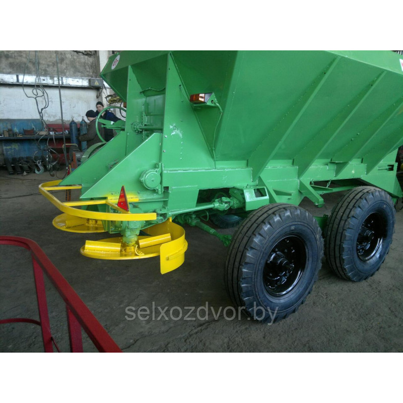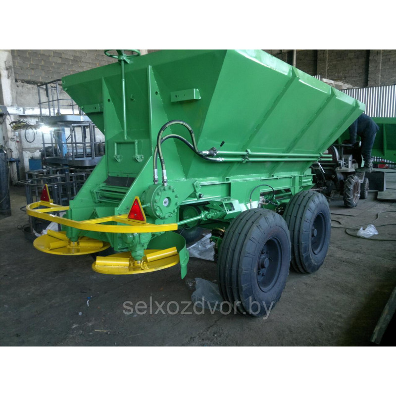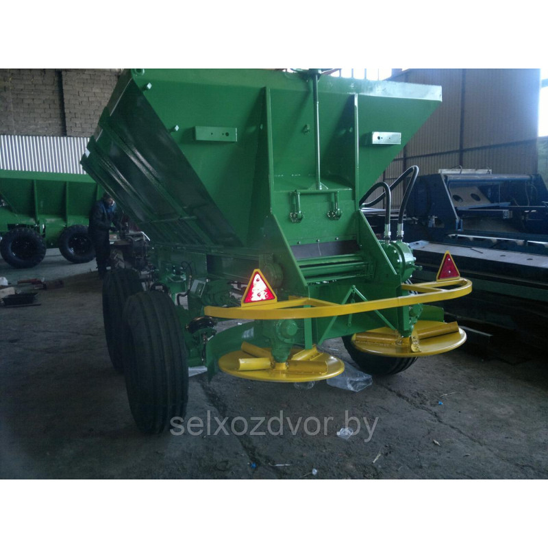 Конструкция:Составные части машины: кузов с рамкой, привод рабочих органов, тележка балансирная, транспортер, рассеивающие центробежные диски, дозирующая заслонка, туконаправитель, рабочий пневматический тормоз и ручной стояночный механический тормоз, оборудование светосигнальное, приспособление для равномерной разгрузки кузова.