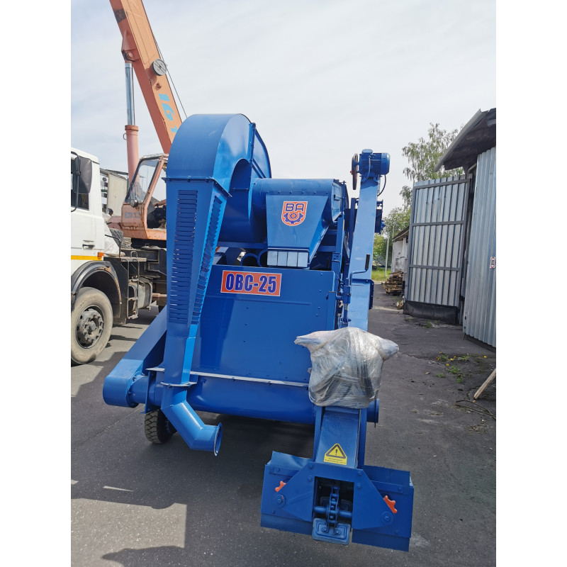 ОВС-25– самопередвижной очиститель. Предназначается для первичной и предварительной очистки поступившего с полей зернового вороха зернобобовых, крупяных, колосовых культур, подсолнечника, семян рапса, сорго, кукурузы от примесей.