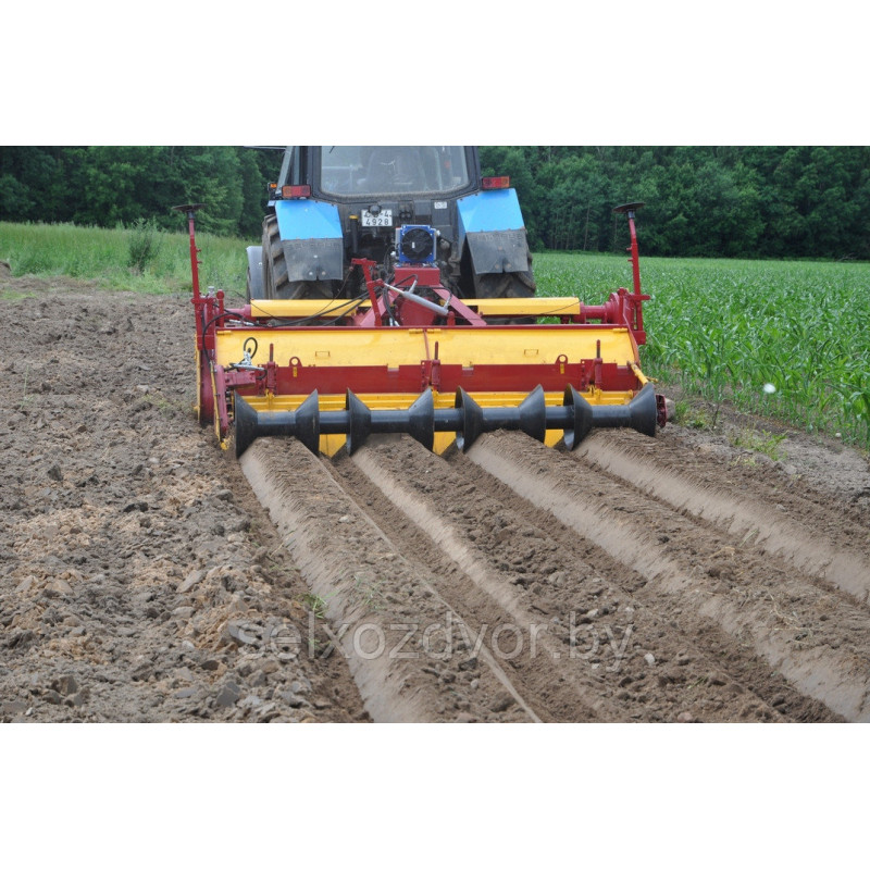 Предназначен для нарезки гребней под посадку картофеля или овощных культур, а также для довсходового окучивания посадок картофеля. Агрегат позволяет получить гребень необходимых параметров (высота гребня 25 – 32 см, ширина гребня по верху 10 – 15 см) и структуры почвы (массовая доля фракций почвы размером до 50 мм. составляет не менее 90%). По заказу потребителя агрегаткомплектуется валкообразователемпод посадку овощных культур. Привод валкообразователяосуществляется от гидромотора. Агрегат на технологической операции нарезки гребней агрегатируется с тракторами тягового класса2,0-3,0 , на довсходовом окучивании посадок картофеля с тракторами тягового класса 1,4 – 2,0.