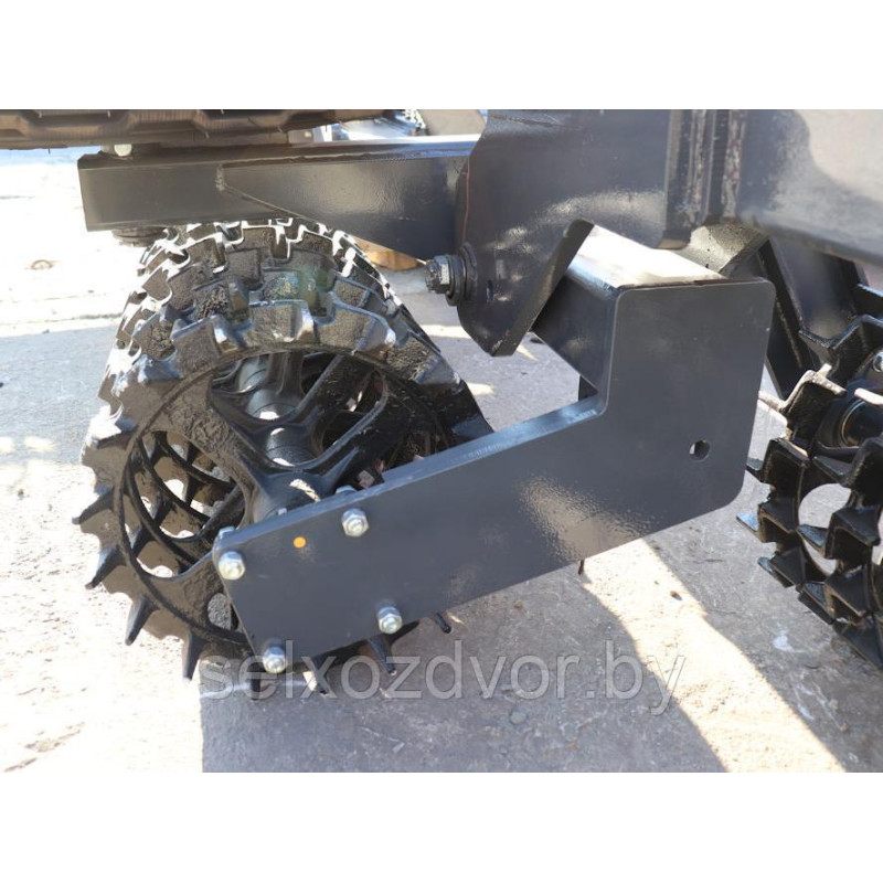 Каток представляет собой полуприцепное гидрофицированное орудие с шарнирной рамой, на которой установлены батареи катков.