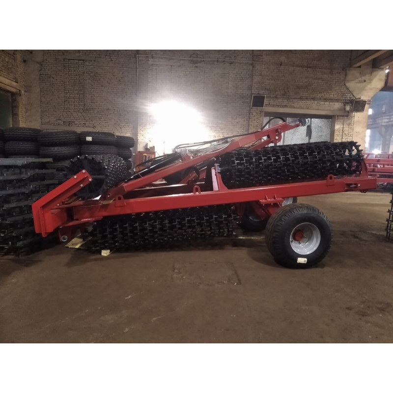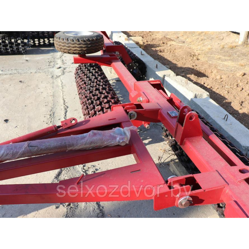 Конструкция катка позволяет его безопасное транспортирование по дорогам общего пользования за счет возможности его перевода в положение дальнего транспорта с помощью гидравлической системы трактора, управляемой с рабочего места тракториста.