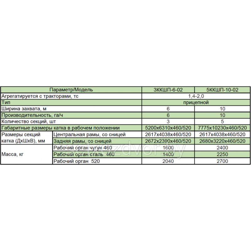 Каток кольчато-шпоровый ККШП (стальные или чугунные рабочие органы) для уплотнения почвы до и после посева. При прикатывании почвы до посева каток выравнивает поверхность поля, разбивает комки и уплотняет, слишком рыхлую, почву.