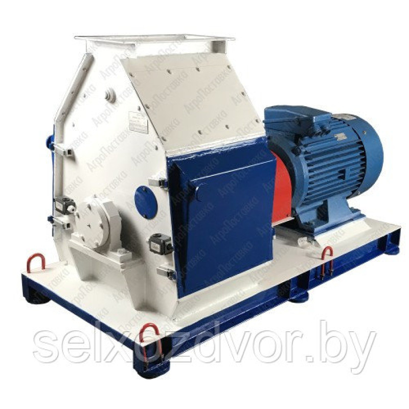 Дробилка и электродвигатель монтируются на общей раме, которая опирается на шесть амортизаторов 11. Загрузка дробилки осуществляется через входную горловину. Регулировка подачи зернопродукта в дробилку осуществляется заслонкой 14. Приводная муфта защищена ограждением 16.