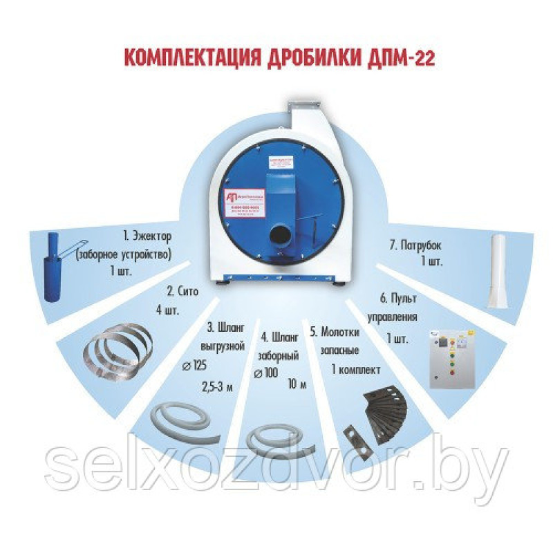 Дробилка зерна ДПМ-22 одна из самых производительных и пользующихся спросом у клиентов в модельном ряду. Зернодробилка ДПМ-22 работает в комплексах производства комбикорма в комплекте с двумя смесителями подавая измельченное зерно в них по переменно (через установленный делитель), это позволяет производить комбикорм циклично и увеличить производительность всего комплекса. Например, при эксплуатации с двумя смесителями СВШ-3 (комбикормовый мини завод КМЗ-3) производительность достигает трех тонн в час.
