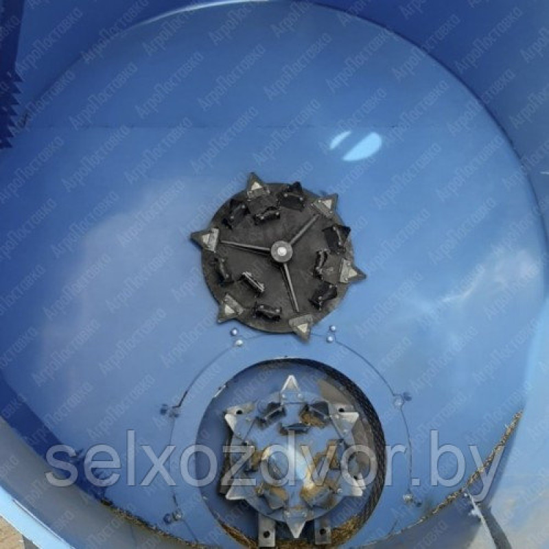 На задней стенке барабана, с внешней стороны смонтирован корпус дробилки с расположенными в нем измельчающим ротором, держателем сита и вентилятором. На переднем диске ротора закреплены торцевые ножи (сегменты), и на осях между дисками ротора молотки. На подмоторной плите дробилке закреплен основной электродвигатель. Выгрузной патрубок соединен с камерой вентилятора.