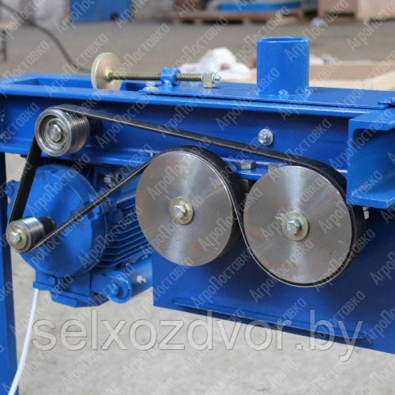 Рабочий орган установки — это 2 валика с насечками. Расстояние между ними регулируется. Плющилка из Польши отличается высоким качеством изготовления и износостойкостью. Она защищена от поломок, связанных с попаданием в нее посторонних предметов. Если между валиками застревает камень, то приводной ремень начинает проскальзывать, не нанося повреждений оборудованию.