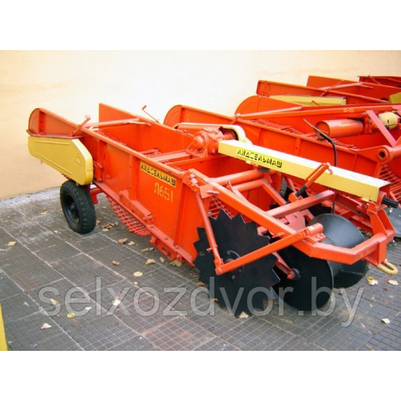 Используется на небольших участках, занятых под картофель. Уложенные в валики клубни просушиваются и подбираются в ручную. Картофелекопатель предназначен для работы на легких и средних почвах, засоренность камнями до 9 тонн на гектар. Наличие боковых дисков снижает тяговое сопротивление при подъеме подрезанного пласта земли на элеваторы.