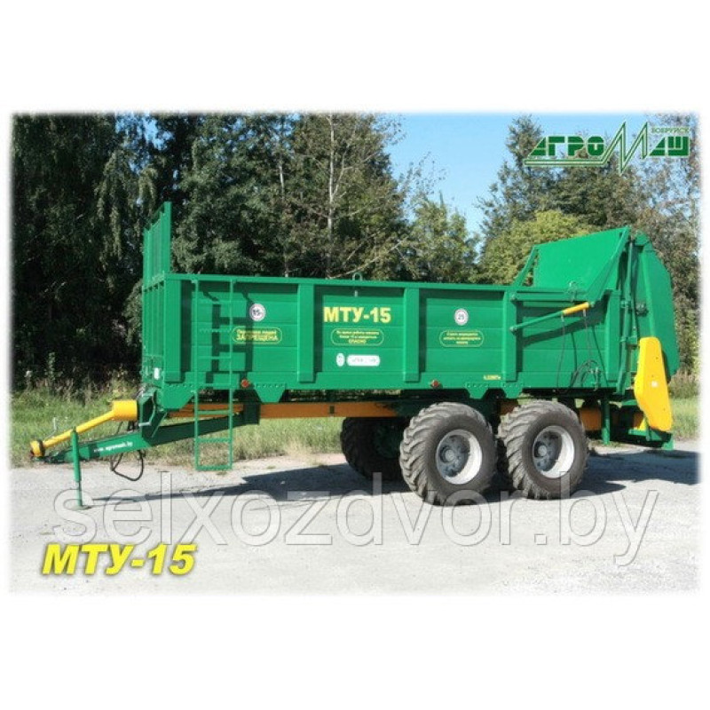 Машина МТУ-15 предназначена для транспортировки и сплошного поверхностного внесения твердых органических удобрений, а при снятом разбрасывающем органе ― для перевозки других сельскохозяйственных грузов с разгрузкой конвейером назад.