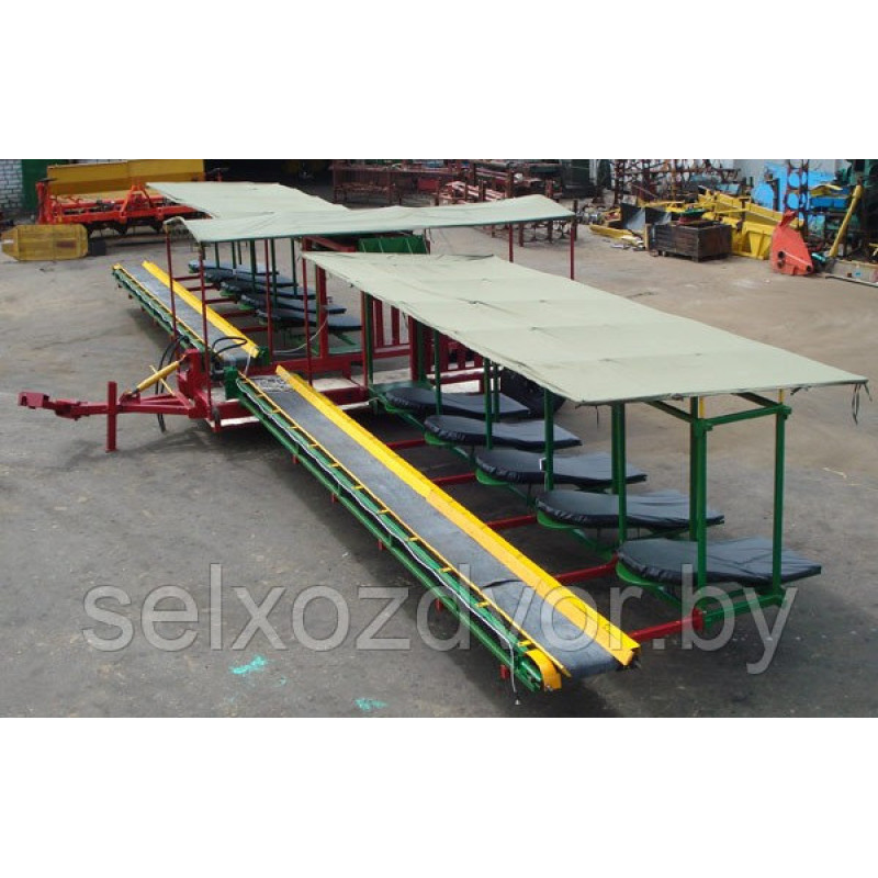 Универсальная платформа предназначена для уборки огурцов (овощей) и загрузки их в тару или транспортное средство непосредственно во время уборки в поле.