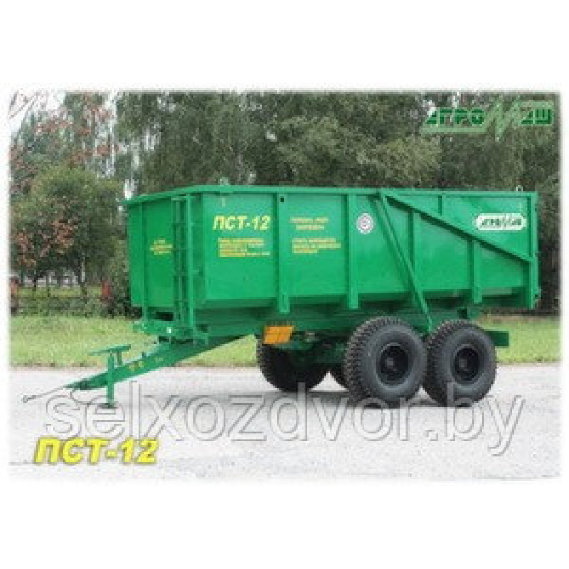 Полуприцеп самосвальный ПСТ-12 предназначен для транспортировки различных сельскохозяйственных грузов, зерна, корнеплодов, органических удобрений, строительных материалов и других грузов с выгрузкой назад.
