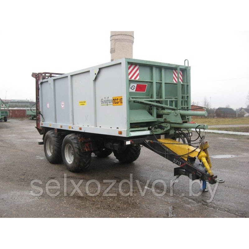 Полуприцеп специальный сельскохозяйственный ПСС-10 предназначен для круглогодичной транспортировки и механизированной разгрузки навоза, компоста, опилок, щепы, гравия, а также сезонной транспортировки и разгрузки травяного, кукурузного силоса, кукурузного зерна, сахарной, кормовой и столовой свеклы, снега, а также сплошного поверхностного внесения твёрдых органических удобрений.