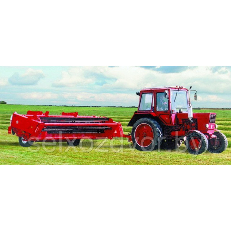 Прицепная косилка-плющилка предназначена для кошения трав с одновременным плющением скошенных растений и укладкой их на стерню в валок. Косилка может быть использована для скашивания трав без плющения со сбором массы в валок. Убирает травы бобовые, злаковые естественных сенокосов. Конструкция беспальцевого режущего аппарата позволяет использовать косилку для кошения трав второго и последующего укосов. Агрегатируется косилка с тракторами тягового класса 1,4.