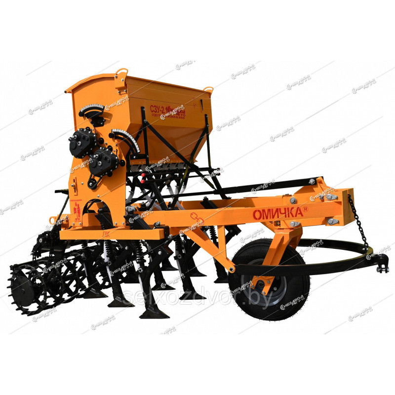 Сеялка СЗУ-2.1Б – зерновая стерневая универсальная предназначена для полосного посева семян зерновых, зернобобовых и мелкосеменных культур полосой 6-8 см с одновременной предпосевной культивацией, внесением минеральных гранулированных удобрений. Идеально подходит для посева семян зерновых (пшеница, рожь, ячмень, овес), зернобобовых (горох, фасоль, соя, чечевица, бобы, чина, нут, люпин), а также большинство мелкосемянных культур (рапс, лён, горчица, люцерна и др.) сыпучих и среднесыпучих семян трав.