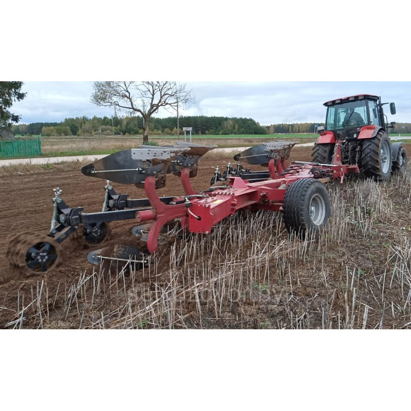 Плуг оборотный 5-ти корпусный предназначен для гладкой пахоты под зерновые и технические культуры различных почв в том числе засоренных камнями и другими препятствиями, с удельным сопротивлением до 9 Н/см" на глубину до 27 см.