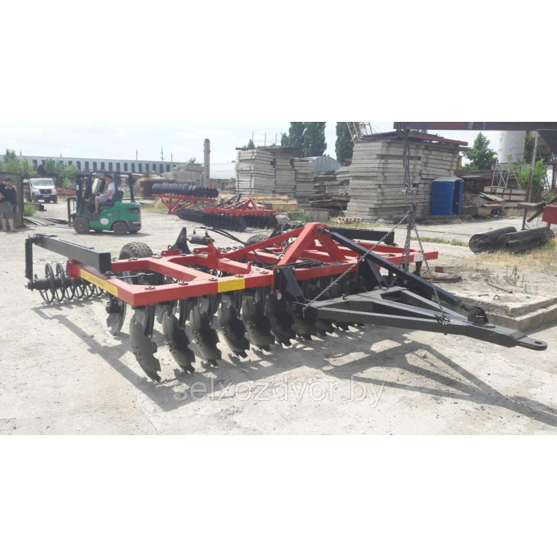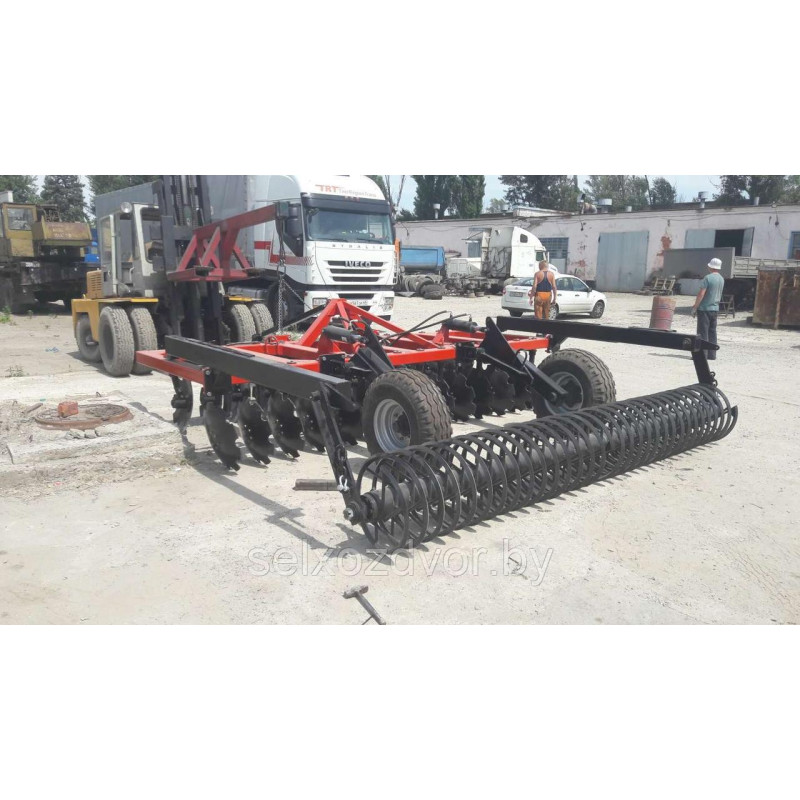 За один проходБДМ-У 4х2Ппроизводит измельчение и заделку растительных остатков предшественника и сорной растительности в почву, создает взрыхленный и выровненный слой почвы, заделывает внесенные удобрения. Каждый ряд дисков имеет возможность регулировки угла атаки и рабочей ширины захвата диска. Диск при этом выполняет роль лемеха и отвала, что способствует лучшему обороту отрезаемого пласта, его крошению, а также снижению требуемого тягового усилия трактора.