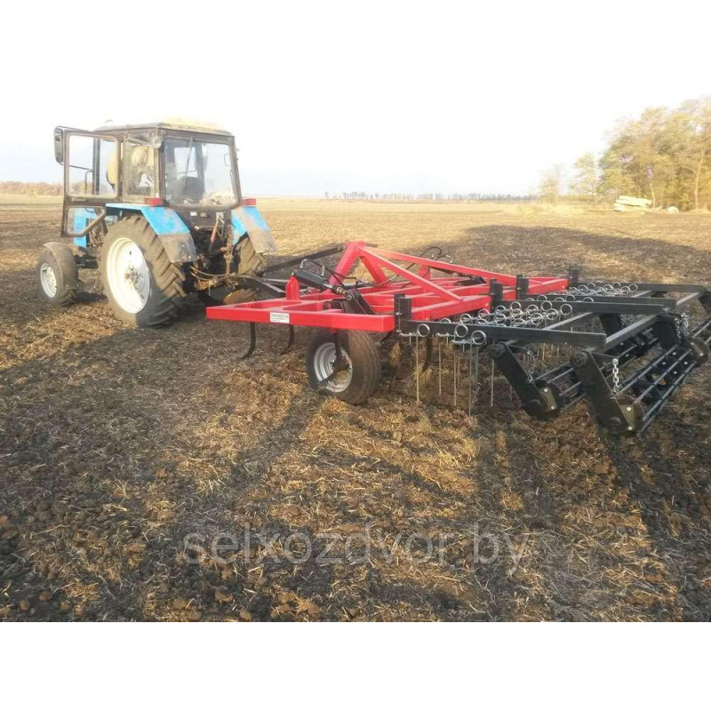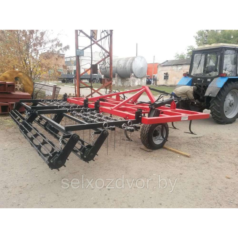 - Культиватор укомплектован 3-х рядной пружинной бороной (Ф10мм) и двойными катками.