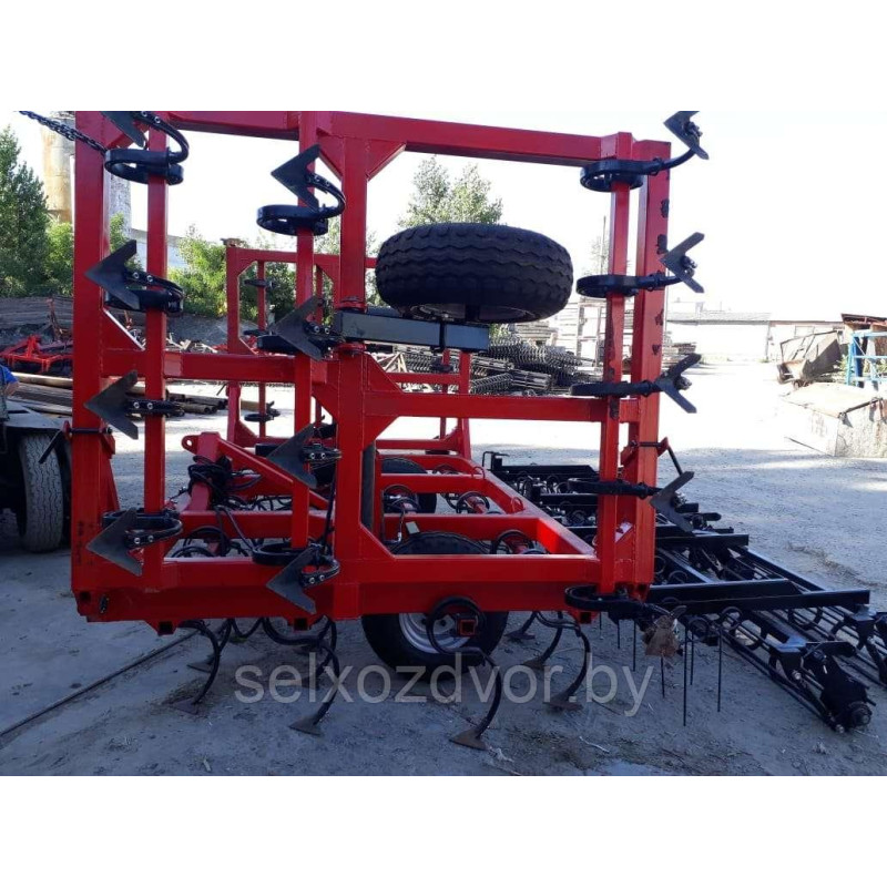 - Культиватор укомплектован 3-х рядной пружинной бороной (Ф10мм) и двойными катками.