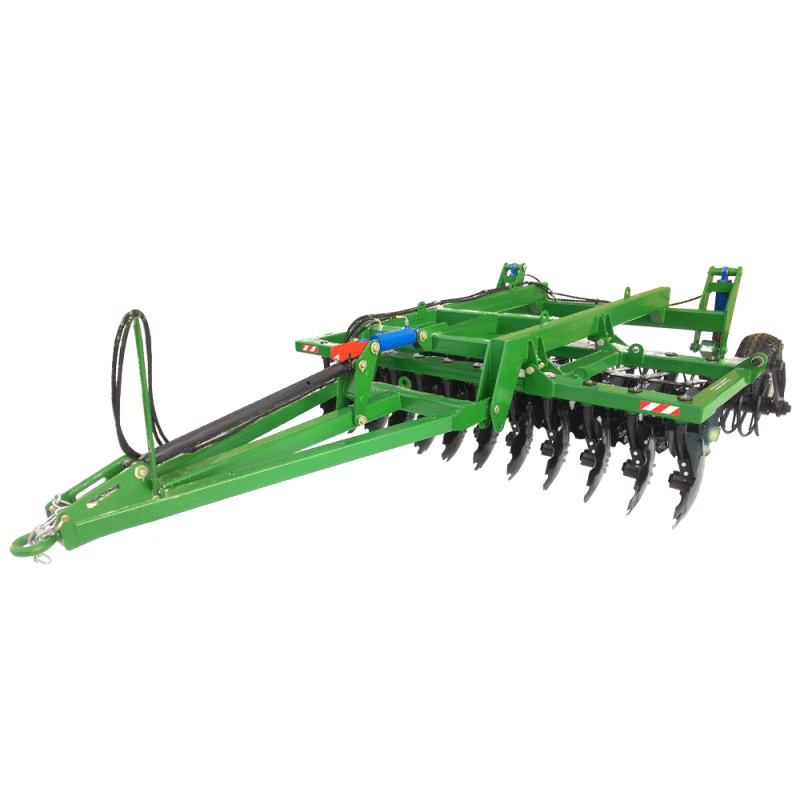 Дисковая борона БДМ 3х2ПБДМ 4х2П предназначена дляповерхностной обработки почвы на глубину до 12 см, уничтожения сорняков, измельчения и заделки пожнивных остатков в почву, разделки зяби и полупара, предпосевной обработки, сохранения влаги. Борона дисковая представляет собой полуприцепное (полунавесное) дисковое орудие с 2-х рядным расположением дисков на индивидуальных стойках.Рабочий орган - сферический диск БДМ диаметром 560 мм фирмыBellota(Испания), усиленный подшипниковый узел (корпус подшипников БДМ), стойка рабочего органа со смазкой "втулка-стойка".Механизм установки угла атаки каждого ряда дисков. Комплектация бороны дисковой спиральным шлейф-катком позволяет плавно регулировать глубину обработки без изменения угла атаки дисков. Отличительной чертой борон является складная конструкция. |