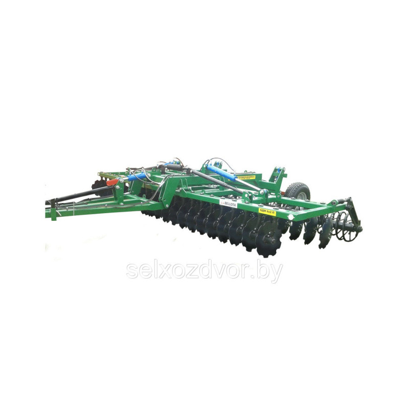 Дисковая борона БДМ 6х2 Ппредназначена дляповерхностной обработки почвы на глубину до 12 см, уничтожения сорняков, измельчения и заделки пожнивных остатков в почву, разделки зяби и полупара, предпосевной обработки, сохранения влаги. Борона дисковая представляет собой полуприцепное (полунавесное) дисковое орудие с 2-х рядным расположением дисков на индивидуальных стойках.Рабочий орган - сферический диск БДМ диаметром 560 мм фирмыBellota(Испания), усиленный подшипниковый узел (корпус подшипников БДМ), стойка рабочего органа со смазкой "втулка-стойка".Механизм установки угла атаки каждого ряда дисков. Комплектация бороны дисковой спиральным шлейф-катком позволяет плавно регулировать глубину обработки без изменения угла атаки дисков. Отличительной чертой борон является складная конструкция. |