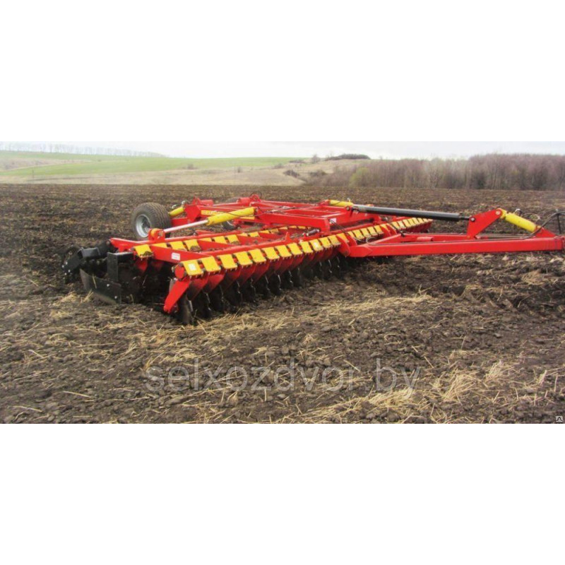 Борона дисковая БДМВ "КОРТЕС" на стойках с эластомерами, шириной захвата от 1,8 до 9,1 метровприменяется для уничтожения сорняков, поверхностного рыхления и предпосевной подготовки почвы без предварительной вспашки, измельчения и заделки в почву растительных остатков, разделки пластов почвы, обработки после уборки толстостебельных культур, с одновременным прикатыванием обработанной почвы для сохранения влаги в почве после уборки урожая.